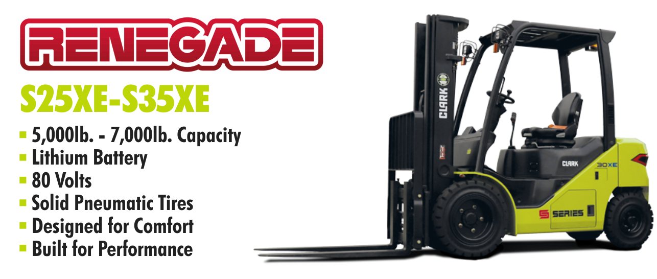 Built with the trusted engineering of our famous S Series line of premium lift trucks, the Renegade features enhanced styling, blending form and function with a striking visual identity that is pure CLARK!
