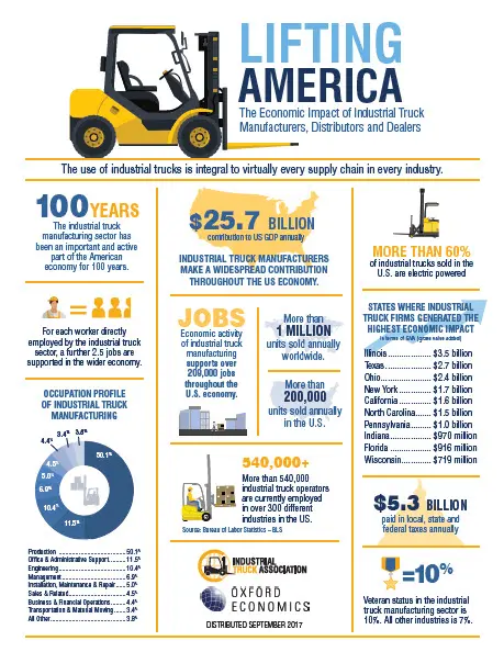 Interested in learning more about the industry? Check out this one-page summary about "The Economic Impact of Industrial Truck Manufacturers, Distributors and Dealers."