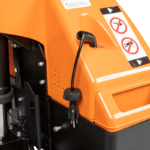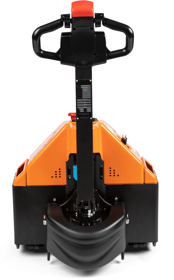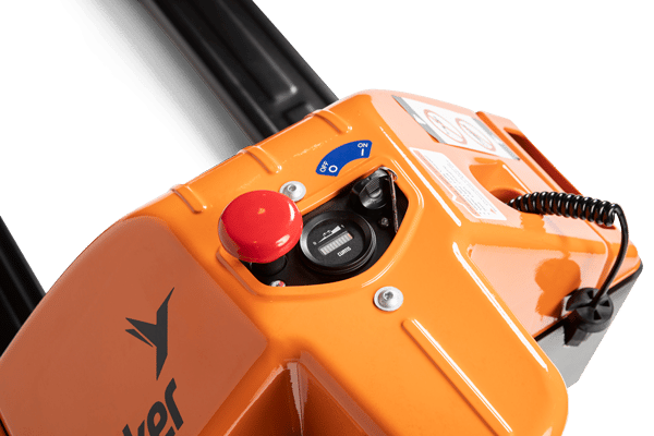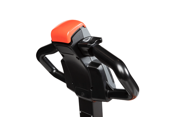 - Tiller Arm Control: Travel, lift, and lower functions are located in the ergonomic operator handle. All operator controls are accessible without having to lift one's hand from the loop handle. The control head is designed to allow easy operation with either hand and includes a belly button reversing switch, dual butterfly travel controls, horn, battery discharge indicator and manual lowering control for quick and efficient operation. The low mounted tiller arm offers excellent operator comfort and minimum steering effort.