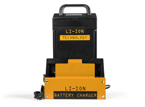 • Easy Exchange Lithium Ion Battery: 24-Volt 20 AH rechargeable 110VAC 10A plug-in external charger