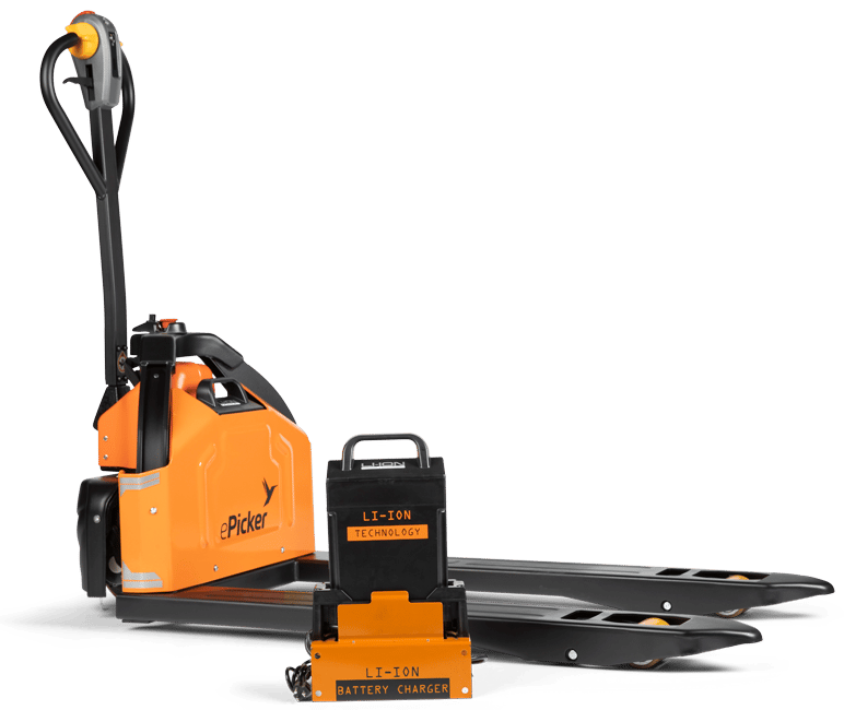 Home / New Equipment / ePicker / ePicker Pallet Movers / Electric Pallet Stackers / Lithium-Ion Powered Pallet Jack
