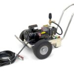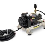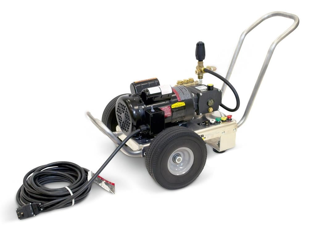 Kärcher’s cold water carts are corrosion-resistant aluminum pressure washers that easily convert from a cart to a skid for maximum cleaning versatility and durability. These reliable electric powered pressure washers have a low-profile handle and compact footprint, making them easy to maneuver, and they offer a bypass loop for additional pump protection. 7-year pump warranty and flat-free tires.