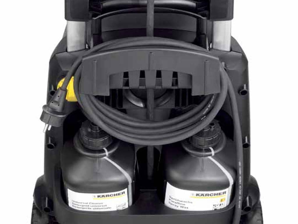 This durable direct-drive, electric-powered cold-water pressure washer delivers cleaning volume of up to 3.0 GPM at 2,000 PSI. Powered by heavy duty industrial-grade motors, these compact electric units feature tri-plunger oil bath Kärcher pumps with a generous 7-year warranty, powder coated steel chassis, hose racks, detergent injection, insulated guns and wands, and tubed pneumatic tires. Features a full-pole air-cooled motor and two-tank SwitchChem system. ETL certified to UL and CSA safety standards.