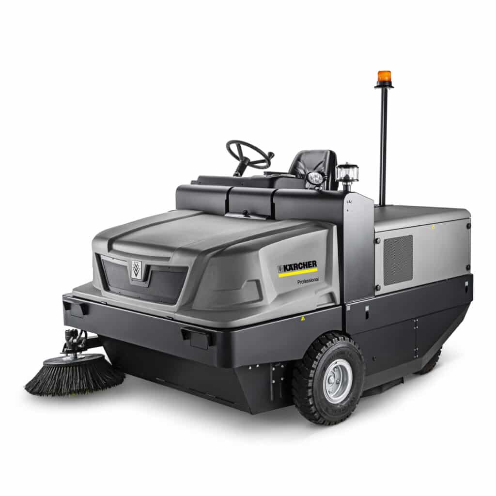 The KM 170/600 R D Classic is a diesel-powered, fully hydraulic industrial ride-on sweeper with four-wheel drive and is engineered for heavy-duty jobs in the building materials and metal-working industries, foundries, construction sites and other dirt-intensive sectors. Its direct throw sweeping and main floating brush provide excellent cleaning results of rough swept materials and large amounts of fine dust. Two horizontally installed flat pleated filters not only ensure clean air under heavy dust conditions but are also automatically cleaned every 10 minutes. This sweeper is robust, easy to maintain, intuitive for operators, and it complies with the new EU Stage V and EPA Tier 4 final emission standards – making it a powerful force for industrial cleaning.