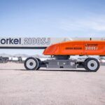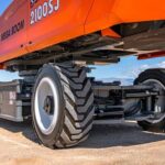 The Snorkel 2100SJ is Snorkel’s largest diesel telescopic boom lift with patented design features. With an impressive reach and lift height, exceptional up and over capabilities offer a maximum horizontal reach up to 100 ft. (30.5m) with a 30 ft. (9.1m) jib boom. Two control panels on the platform allow for safe operation while working at height. Robust 4-wheel drive and multiple steering modes deliver superb rough terrain performance with a tight inside turning radius for excellent maneuverability. Its innovative wheel extension and narrow wheelbase provide stability on the job and ease of transportation.
