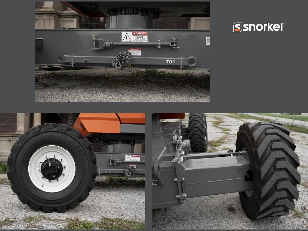 The Snorkel TB126J is the largest model in the line of telescopic boom lifts. The TB126J offers the highest working height in the family with a jib for added outreach. Designed for construction applications, a powerful diesel engine comes as standard, along with a fixed front axle and extendable rear axle.