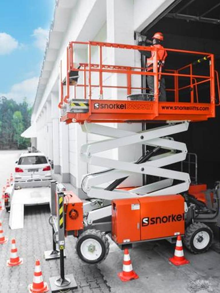 The Snorkel S2255RT narrow rough terrain scissor lift provides excellent off-road performance thanks to a powerful diesel engine. It’s ultra-narrow width and low weight means it can be easily towed on a tandem trailer.