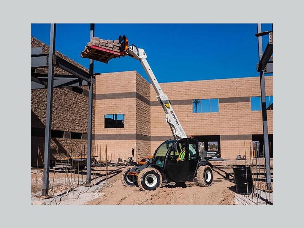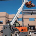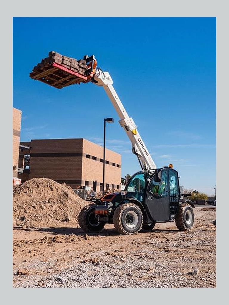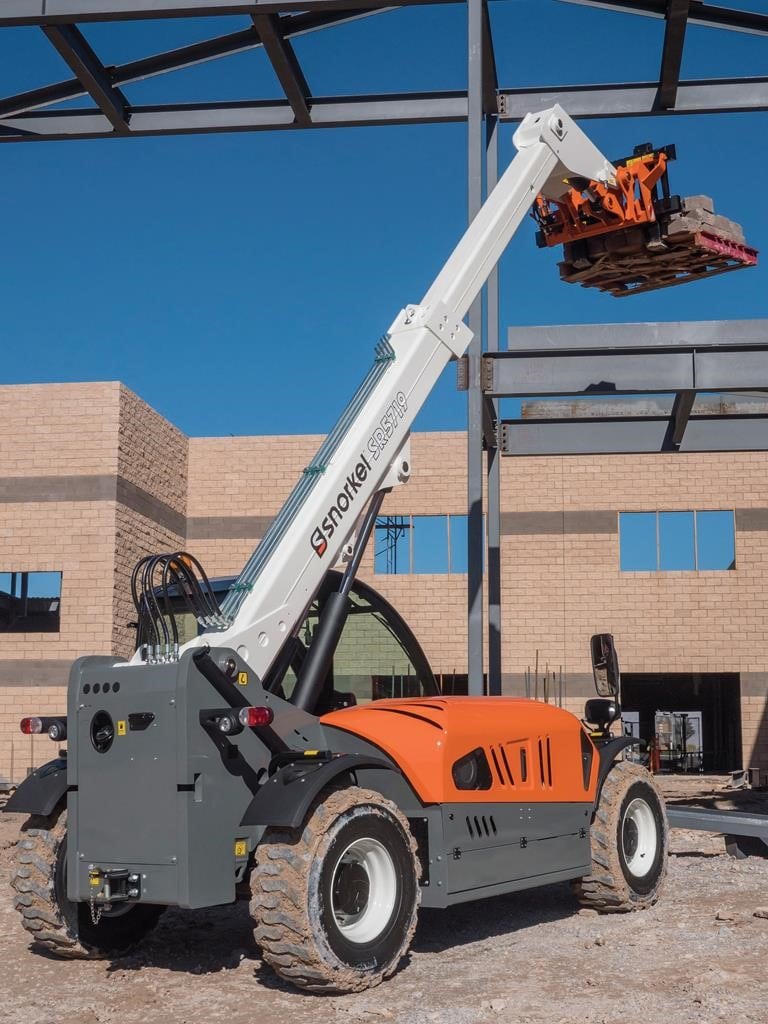 The Snorkel SR5719 compact rough terrain telehandler delivers top performance in a compact design. Featuring full-time 4-wheel drive, power assisted steering and proportional joystick, the telehandler is packed with power and precision to lift materials in any application.