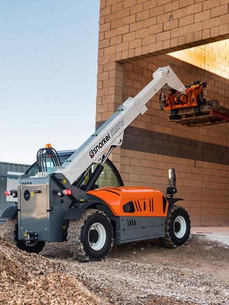 In any direction, Snorkel’s rough terrain telehandlers extend a helping hand. Full-time 4-wheel drive and proportional joystick controls allow for tight maneuvering. The highly versatile telehandlers are designed to multitask on the toughest jobsites. For any application, each one can lift, reach and haul material up high or on the ground.
