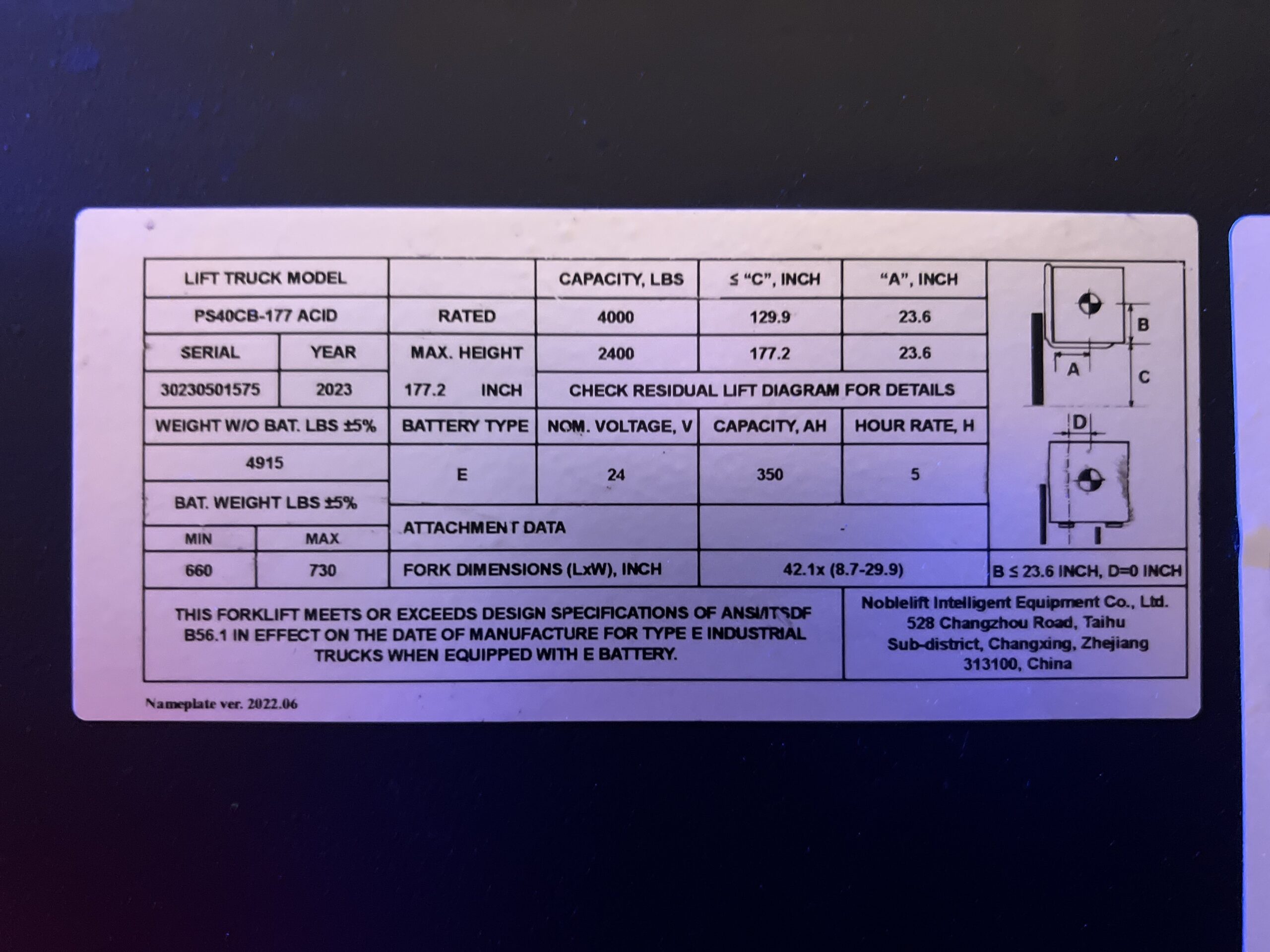 • Mast Upright Lift: 177